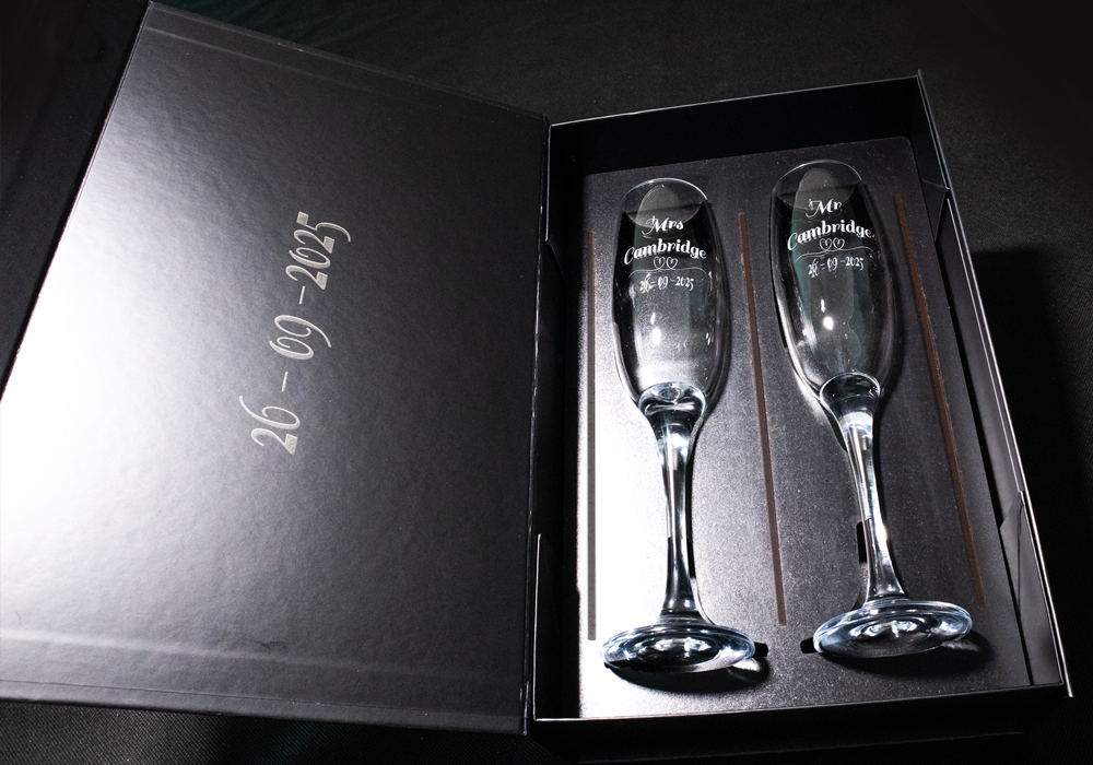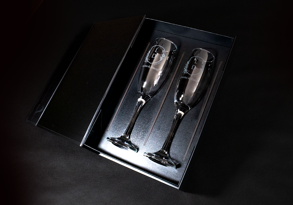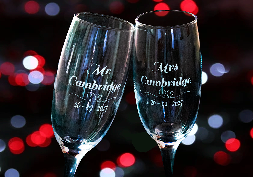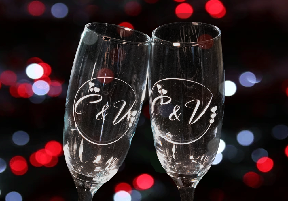 Price is per pair of engraved champagne glasses for marriages, celebrations, presentations etc.